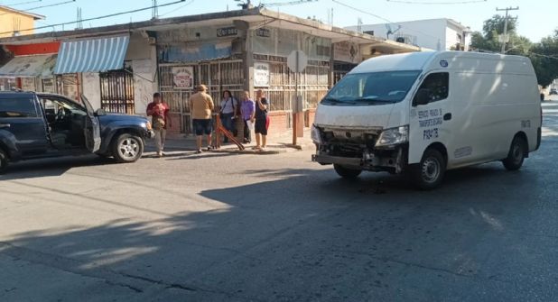 El conductor de una camioneta Nissan Urvan, al servicio de una empresa de paquetería, no respetó una señal de alto, lo que originó un accidente, en el que sólo hubo daños materiales.
