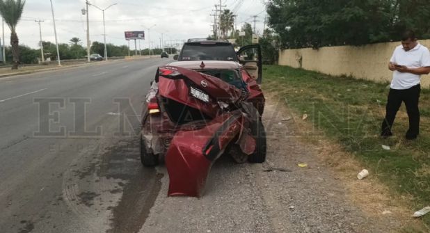 Por darle el paso a un tráiler que retornaba en la Carretera Nacional, un ciudadano de Nuevo León frenó y su carro Nissan Versa sufrió un fuerte choque por alcance con una potente camioneta Chevrolet Tahoe.