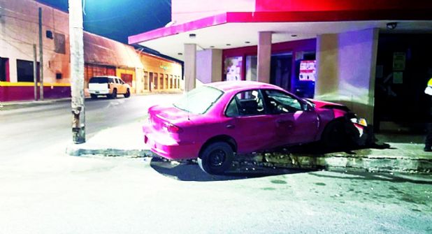 Un jovencito por poco se mete con todo y automóvil a una tienda departamental ubicada en el sector Centro de Nuevo Laredo, causando daños en un muro de concreto y la pared del lugar.