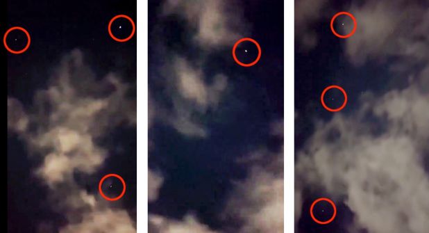En el video, las luces parecían adoptar distintas formaciones: en momentos, se alineaban en una línea recta, y luego se agrupaban en un patrón que recuerda a aviones volando en escuadrón.