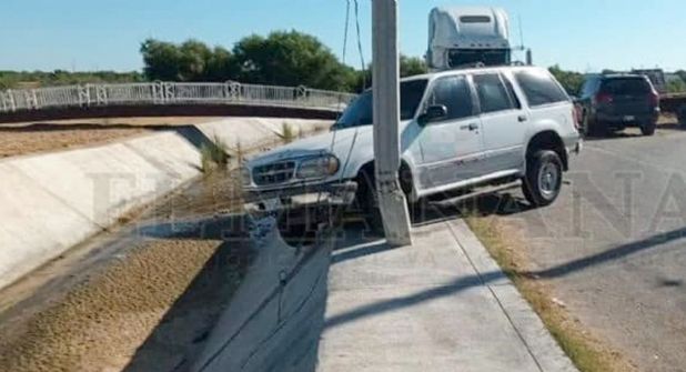 Un poste de cemento de la CFE salvó la vida del conductor de una camioneta Ford Explorer ya que, al impactarse contra este, evitó que el vehículo cayera al arroyo de la colonia Los Fresnos.