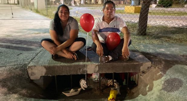 Delia Garza, junto a su esposo e hija, son quienes desde el año pasado le han dado un poco de novedad a esta fiesta, con la simulación de la pantalla de cine a la realidad de una de las películas que se han convertido en un icono para estas fechas, decorando la alcantarilla que está ubicada en donde convergen las calles Paseo Loma Real y Avenida Tecnológico.