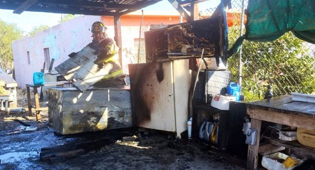 Al llegar, los equipos de emergencia encontraron que se trataba de sólo un conato de incendio en un refrigerador que usaban para meter herramientas y del techo de un taller.