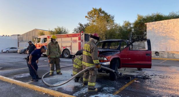 Una camioneta situada en el área de estacionamiento de un conocido supermercado de la ciudad se incendió por causas desconocidas, sufriendo daños muy cuantiosos.