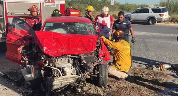 Un hombre quedó prensado dentro de su automóvil luego de que chocó contra una camioneta, cuya conductora se le atravesó, provocando el brutal accidente en la Colonia Guardiola.