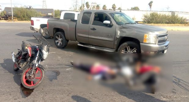 La pareja viajaba en una motocicleta circulando de poniente a oriente por la Carretera a Anáhuac, y a la altura de la calle Martha Lina Flores, chocaron contra una camioneta.