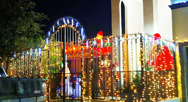 Al caer la noche la mayoría de los domicilios encienden las decoraciones, en las que invierten tiempo, dinero y mucho esfuerzo.