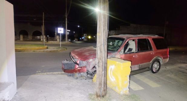 La camioneta abandonada es una Ford Expedition modelo 2003 color roja, la cual terminó con severos daños en su frente tras el choque contra el muro de concreto.