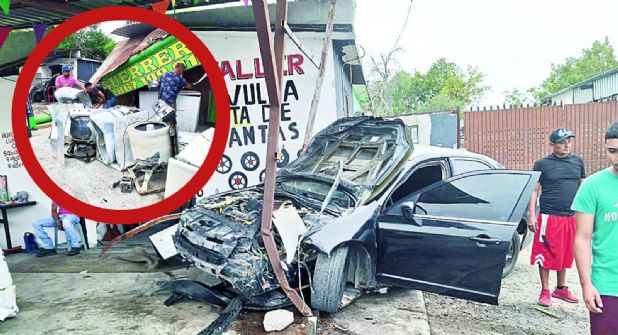 Del “vuelo” que llevaba, el carro se impactó contra las instalaciones de una vulcanizadora ubicada a un lado del puesto de las lavadoras.