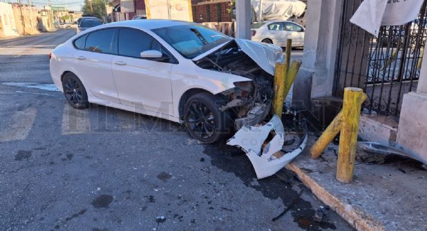 El choque que recibió el auto Chrysler, lo proyectó hacia la esquina suroriente del crucero, rematando contra los rieles protectores.