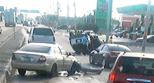 El tránsito vehicular fue severamente afectado durante un buen rato en la lateral del kilómetro 10 de la carretera Nacional, justo frente al supermercado Smart de Colinas del Sur.