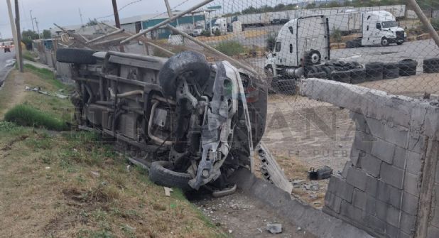 Personal de Protección Civil y Bomberos acudieron al llamado de emergencia, observando que la camioneta estaba volcada sobre la barda de cemento de la empresa mencionada.