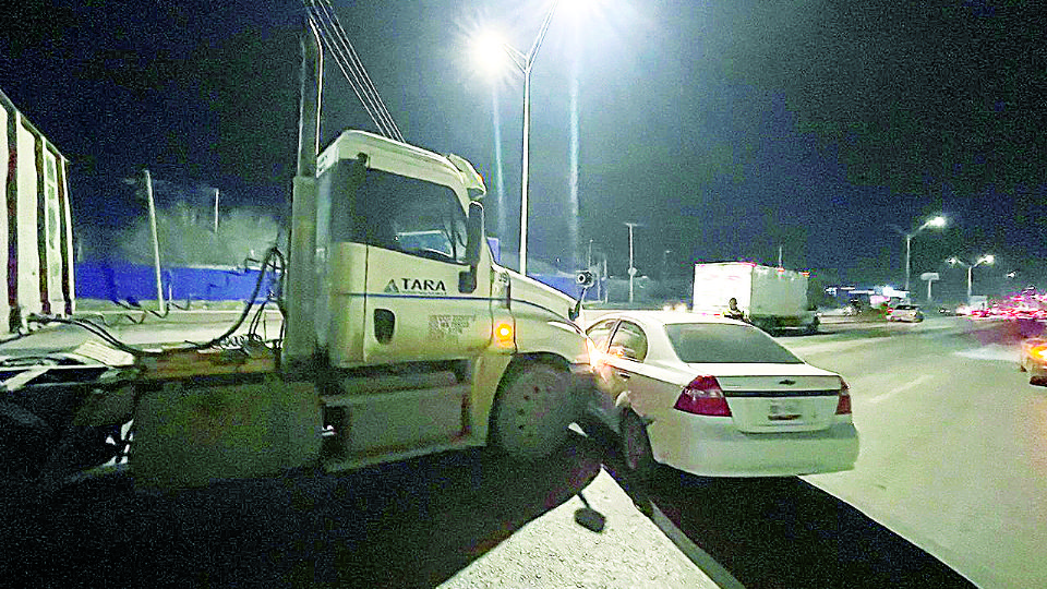 Al cambiar de carril sin cuidado, el operador de un tráiler provocó un accidente en la Carretera Aeropuerto, en el que sólo se reportaron daños materiales de consideración.