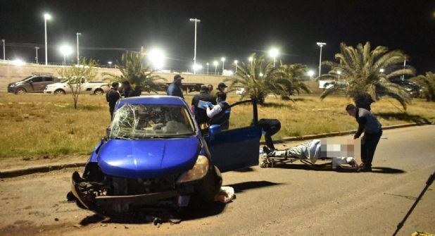 La Carretera Aeropuerto a la altura del kilómetro 2.5 fue el escenario de un accidente fatal esta noche, luego de que un auto compacto fuera embestido presumiblemente por un tractocamión, cuyo conductor no permaneció en la escena.