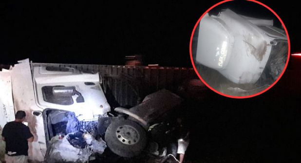 Miguel Ángel “C”, quien viajaba en un tráiler de la empresa FlexCoah, perdió el control de su vehículo, se salió de la carretera y quedó volcado con la caja destrozada y la mercancía regada.