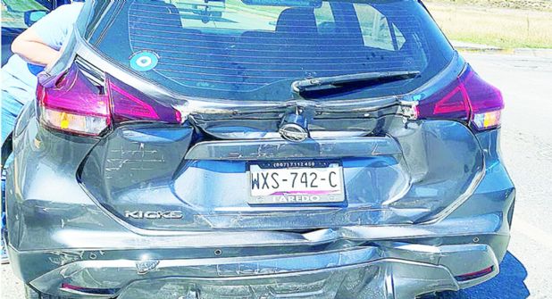 Una mujer resultó ilesa después de que su camioneta Nissan Kicks fuera impactada por alcance cuando ella estaba detenida frente a un semáforo esperando que cambiara a luz verde.