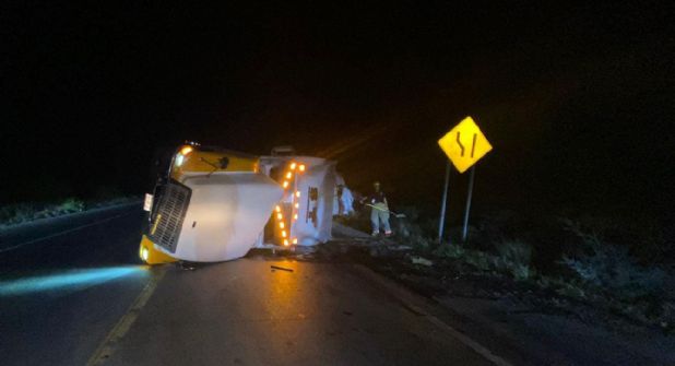 Lesionado quedo el chofer de un tráiler que tuvo la mala suerte de volcarse en un tramo peligroso de la fatídica carretera llamada Mex 2.
