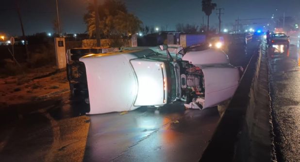 Minutos más tarde se registraba la volcadura de la camioneta van en la misma bajada de la rampa mencionada.