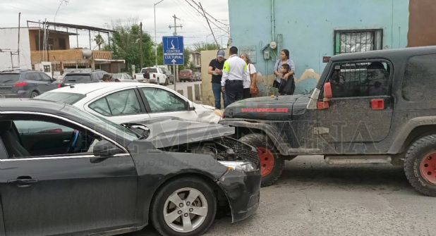 Tres vehículos dañados fue el saldo de una carambola registrada el martes por la tarde en las calles de Venezuela y Josefa Ortiz de Domínguez en la colonia Mirador en Nuevo Laredo.