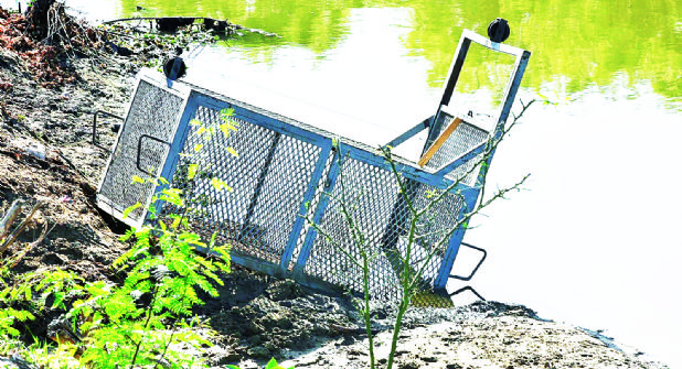 La trampa tiene un pollo al exterior y otro al interior, como carnada para atraer al cocodrilo, se colocó a la orilla del arroyo El Coyote, a la altura de la Antigua Carretera Nacional y cerca de la Preparatoria Número 1, contemplando que por las condiciones y los avistamientos, el reptil podría encontrarse en esa zona, entre las colonias Concordia, Fraccionamiento Río Bravo e ISSSTE, aunque el arroyo atraviesa también un sector de la Infonavit-Benito Juárez.