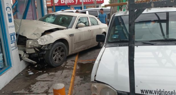 Se debate entre la vida y la muerte ll chofer del carro Chrysler que chocó contra un camión de una vidriera local y se metió al negocio de pinturas ubicado en el crucero de César López de Lara y Perú.