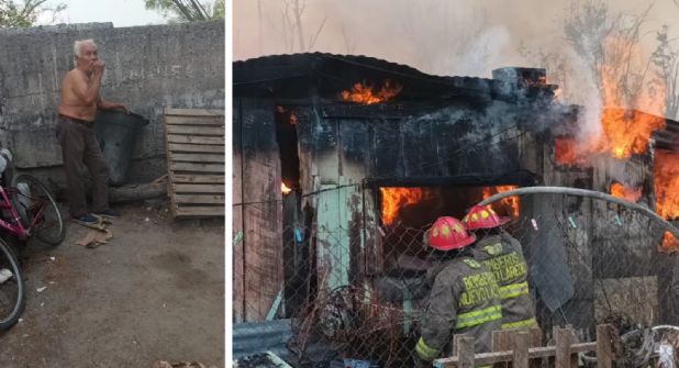 Un incendio consumió por completo una humilde vivienda de la colonia San Rafael y dejó en la calle a una pareja de adultos mayores, quienes apenas consiguieron salir de milagro entre las llamas ayudados por sus vecinos.