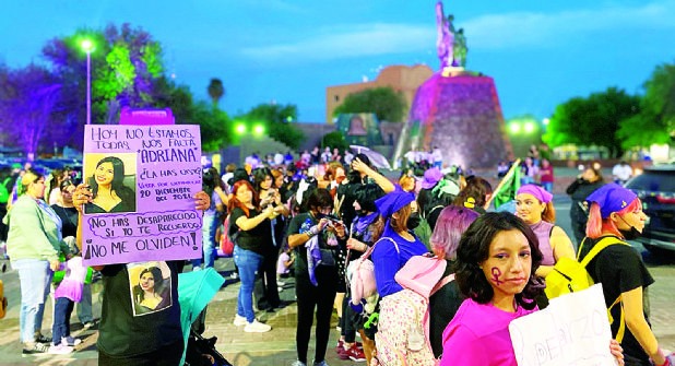 A las 5:00 de la tarde, un contingente de más de 400 personas conformado por algunos colectivos feministas locales como Nabada Feminista, marchó con pancartas y cánticos por la avenida Guerrero, deteniéndose en la Explanada de los Fundadores, para posteriormente continuar hasta la rotonda del Monumento a Benito Juárez, donde concluyeron su marcha con diversas actividades, pero también realizaron denuncias públicas respecto a casos de violencia y un enérgico llamado al respeto y atención a los casos registrados.