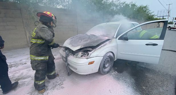 Con daños considerables terminó un automóvil luego de que se incendió mientras su conductor circulaba por la Carretera Nacional, a la altura de la colonia Colinas del Sur.