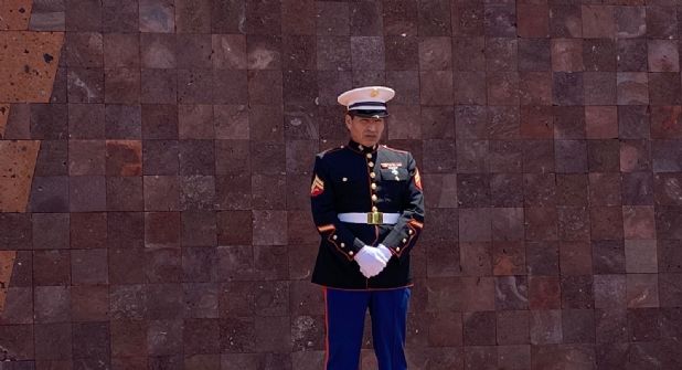 Este domingo 14 de abril apareció en Nuevo Laredo el “soldado enamorado” y se colocó justo frente al Monumento a Los Fundadores de Nuevo Laredo. Fue en la mañana que se apostó sobre el lugar y dijo que lo hizo porque es el cumpleaños del amor de su vida, una mujer de nombre Cecilia.