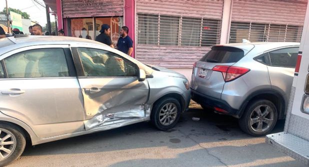 Tres vehículos -uno de ellos estacionado- se vieron involucrados en un accidente vial, provocado por un conductor que no respetó una señal de alto en calles del sector Centro de Nuevo Laredo.