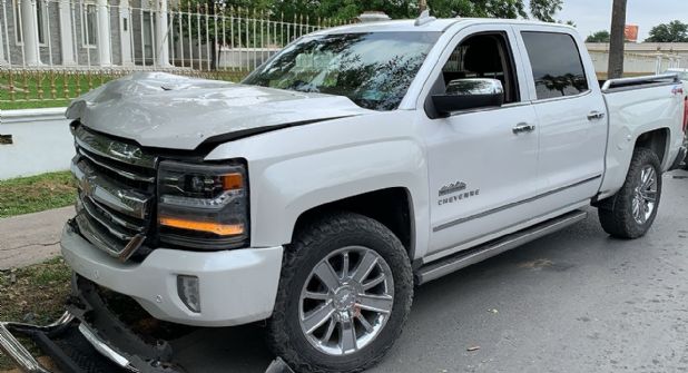 La camioneta, una Chevrolet Cheyenne 2018, sufrió daños en su parte frontal, mientras que al árbol nada le sucedió.