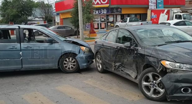 Por distraerse en el teléfono, el conductor de un Ford Fusion se estrelló contra el costado de una camioneta en hechos registrados la tarde de este día en el crucero de Perú y Niños Héroes.