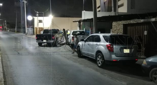 Agentes viales que intervinieron en este caso informaron que el chofer de la camioneta Dodge Ram se desplazaba de norte a sur por la Calzada Revolución y pasando 2 de abril se cargó a la derecha, impactándose primero contra el costado de una Chevrolet Equinox 2011 para posteriormente hacerlo contra el postre de madera, rematando contra una Mitsubishi 2023 también estacionada en la acera.