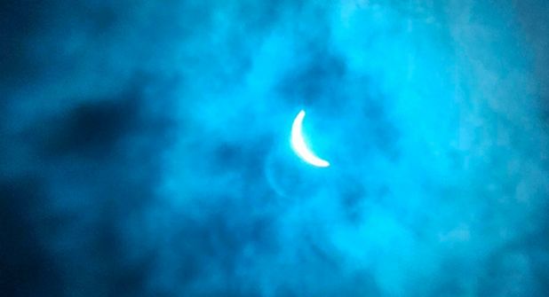 Aunque las nubes han obstaculizado en gran medida la visión del fenómeno cósmico, breves momentos de claridad han permitido captar el deslizamiento de la luna sobre el sol.