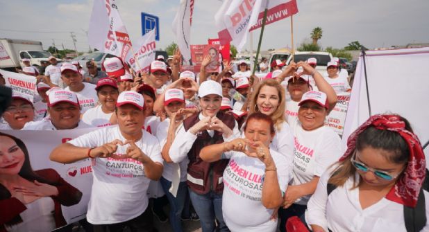 Reservas Territoriales fue la sede más reciente de un “Mega Pegoteo” en el que participaron cientos de neolaredenses del sector en apoyo a la candidata a la alcaldía, Carmen Lilia Canturosas Villarreal de la coalición Morena, Verde Ecologista y PT.