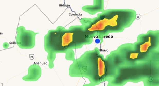 Esta mañana una tormenta se registró en Nuevo Laredo; en el radar de The Weather Channel marca que así se mantendrá, por lo menos, hasta la 1:00 de la tarde.