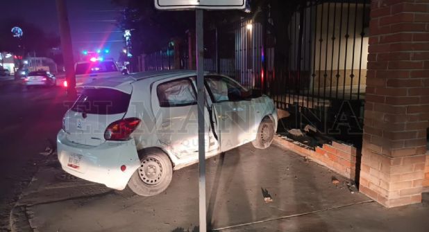 Lesionada quedó una joven mujer cuyo carro Mitsubishi fue chocado por otro vehículo que se dio a la fuga y la lanzó contra la cerca de una iglesia metodista.