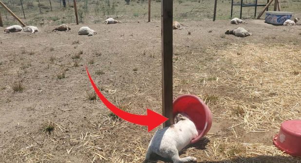 En las imágenes compartidas por uno de los propietarios del rancho se puede ver a varios chivos y borregos tirados sobre la tierra, incluso algunos se ven cerca de su vasija de comida, como si la muerte les hubiera llegado cuando se estaban alimentando.
