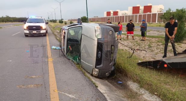 Joven matrimonio se volcó esta mañana cuando viajaban en su camioneta Ford Escape, saliendo lesionada la pareja del conductor, e informándose que la joven trabajadora presentaba varias semanas de embarazo, preocupando a los paramédicos y sus familiares, requiriendo su traslado al Hospital del Seguro Social con carácter de urgencia.