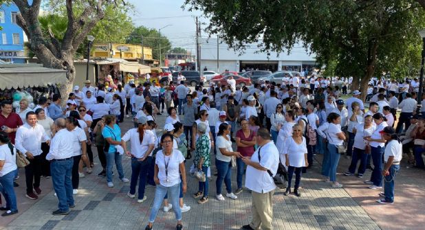 Convocados con vestimenta en color blanco, los simpatizantes de la candidata a la alcaldía de Nuevo Laredo, Carmen Lilia Canturosas, por el partido de Morena, se dieron cita en la Plaza Hidalgo.