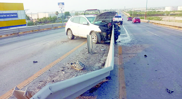 Por la posición en que quedó el vehículo, los agentes viales determinaron que éste circulaba de sur a norte por la Carretera Aeropuerto y subiendo el puente de la colonia Primero de Mayo, el conductor se descontrola y va a impactarse contra el barandal de contención, dañando un buen tramo del mismo.