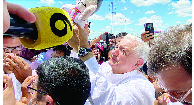 Mientras esperaban la salida de López Obrador, bajo el sol agobiante y una temperatura de 40 grados, los simpatizantes gritaban ¡Presidente, presidente!, ¡Es un honor estar con Obrador!, entre otras porras y no se movieron del lugar hasta que el mandatario saliera en su camioneta y bajara a saludar.