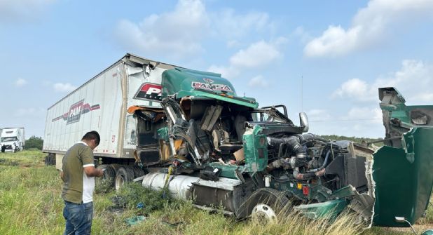 Persona de Protección Civil y Bomberos de Nuevo Laredo respondieron al llamado de emergencia y llegando al lugar, reportaron que el percance fue de un tráiler en circulación contra otro que estaba estacionado en el acotamiento de la Carretera.