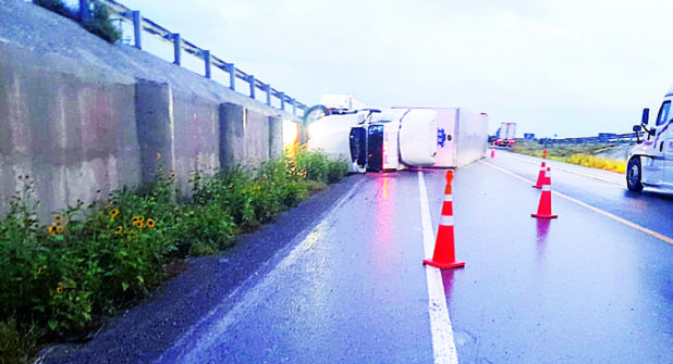 Un operador de tráiler resultó lesionado al volcar en la unidad de carga que conducía en la carretera a Nuevo Laredo en su tramo libre durante la lluviosa madrugada de este jueves.