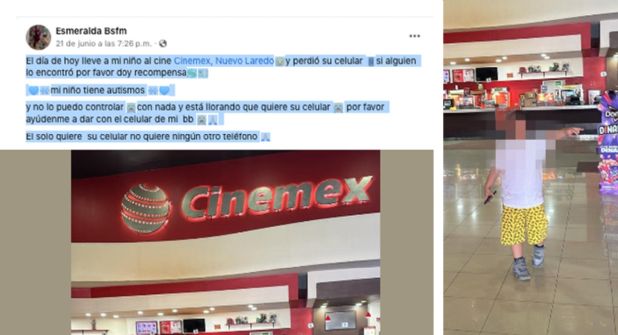 Una madre de Nuevo Laredo ha lanzado una petición en Facebook que ha conmovido a la comunidad. Durante el pasado fin de semana, su pequeño hijo, quien padece autismo, perdió su teléfono celular en las instalaciones de Cinemex.