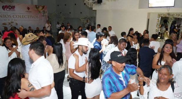 Más de 50 parejas celebraron su unión matrimonial en un evento especial que realizó el Sistema DIF Nuevo Laredo para celebrar a los beneficiados de la Campaña de Matrimonios Colectivos 2024.