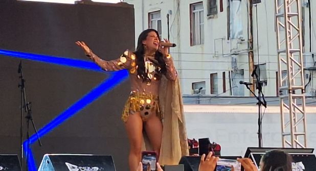 La originaría de Nuevo Laredo, logró congregar a cientos de ciudadanos cantando temas populares, covers y su icónico tema, Let ir go o Libre soy, icónica interpretación que le valió su participación en la ceremonia de los Oscars en 2020.