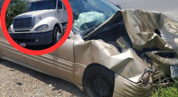 Al no poder reaccionar, el conductor del Pontiac Grand Am terminó chocando contra el tráiler y resultó con algunas lesiones que requirieron su revisión médica en un hospital del Seguro Social.
