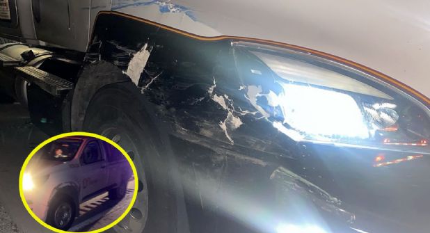 El accidente provocó daños materiales en la camioneta y el tráiler, cuyo chofer no se percató que la primera se encontraba averiada a pesar de tener las señales colocadas.