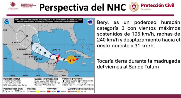 En Nuevo Laredo, las autoridades se encuentras monitoreando constantemente el desplazamiento en el Golfo de México del huracán Beryl.